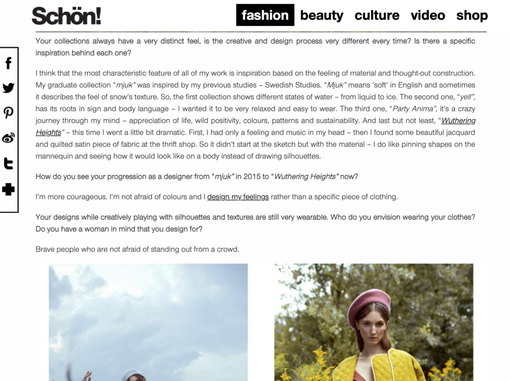 Wuthering Heights collection and the interview with Kata Haratym for Schön!