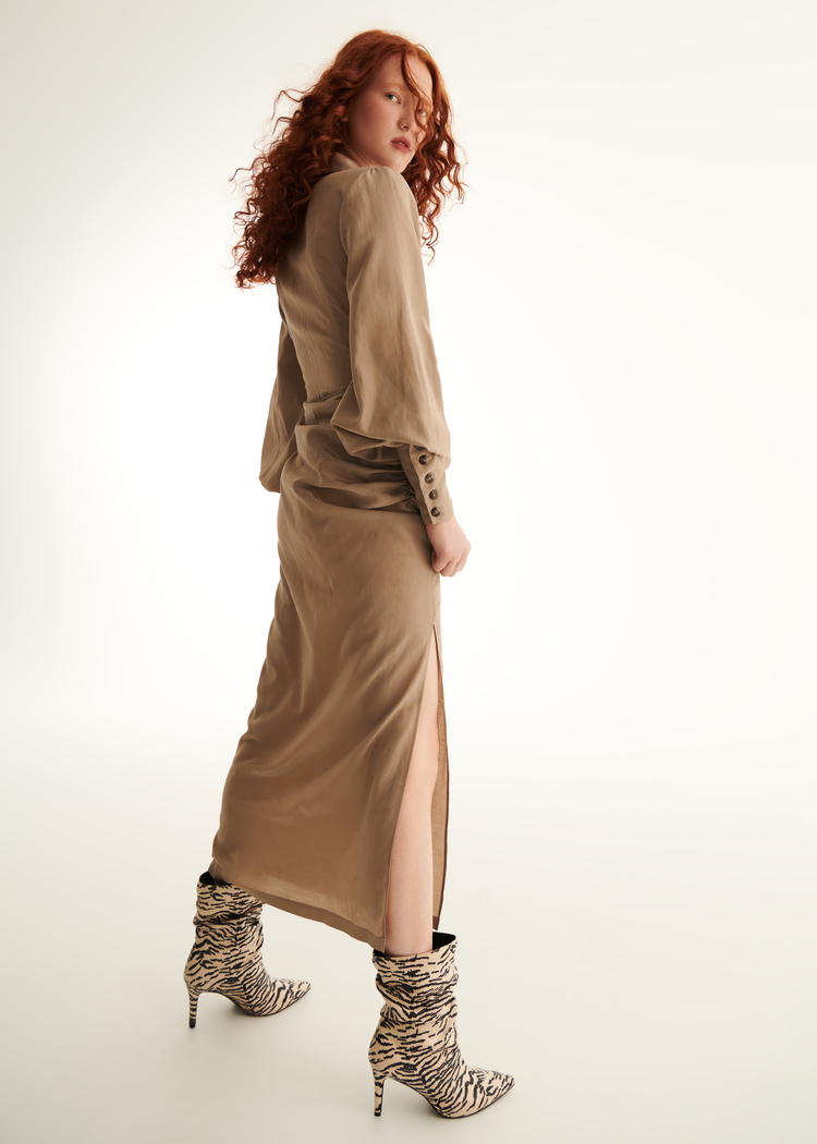During the process of creating each element, I focus on details and finishes. I rebel against overconsumption and one-time fashion. Does this mean clothes have to be boring? Not at all. I am a big fan of colors and patterns, and instead of sketching projects, I like to pin and drape the material to see the final effect.