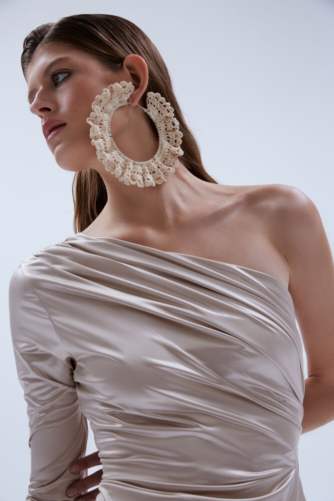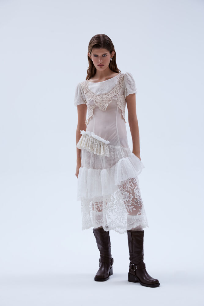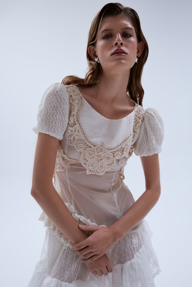 What sets this collection apart is the celebration of individuality. Some silhouettes are truly one of a kind, such as the crochet dress—a masterpiece crafted by deconstructing five blouses sourced from a second-hand store. It’s a homage to the roots of my artistic journey, a return to the joy of creating truly unique and meaningful pieces.