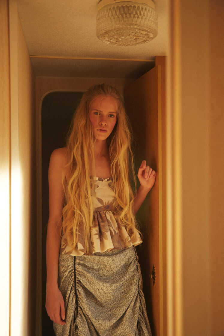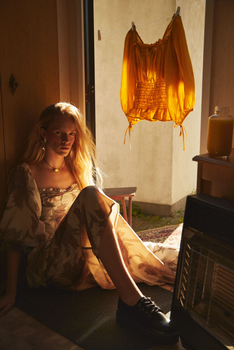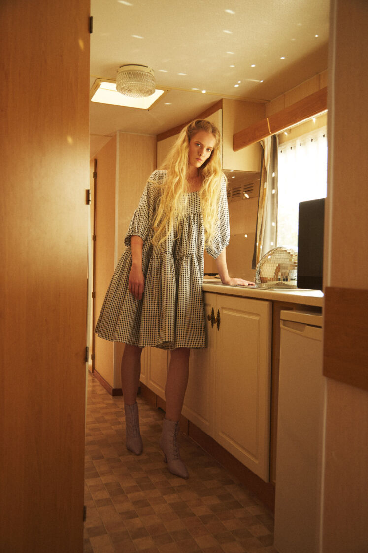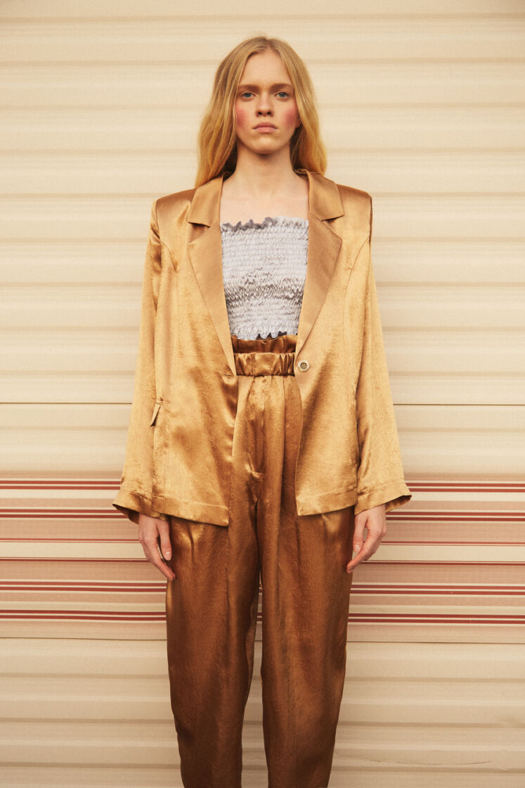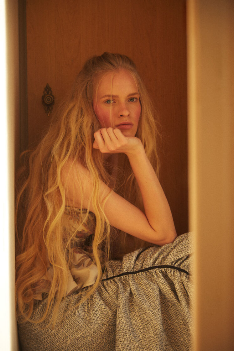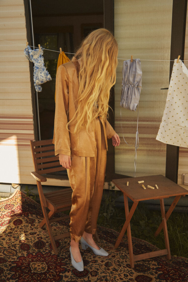 The collection is inspired by the work of Sofia Coppola, the climate of the films “Virgin Suicides”, “Marie Antoinette” and “The Beguiled”. Compatible with the spirit of sustainable fashion, sewn in Poland from materials from the so-called deadstock, lyocell, viscose, as well as Italian silk. Sump creases, strings and corset ties take us to the disturbing, intimate world.