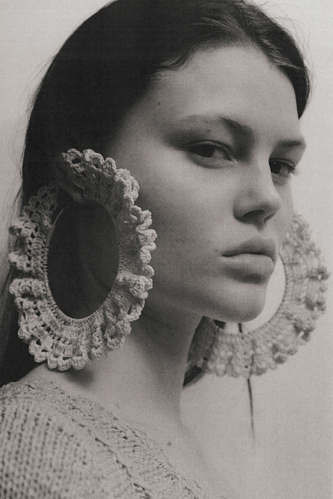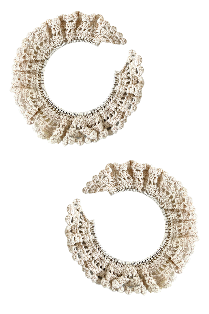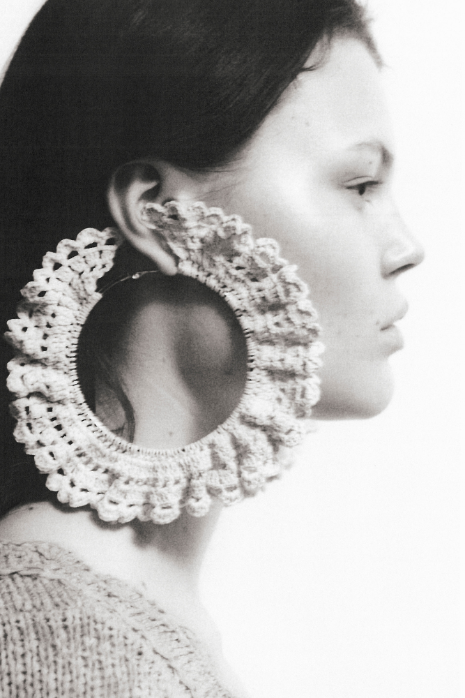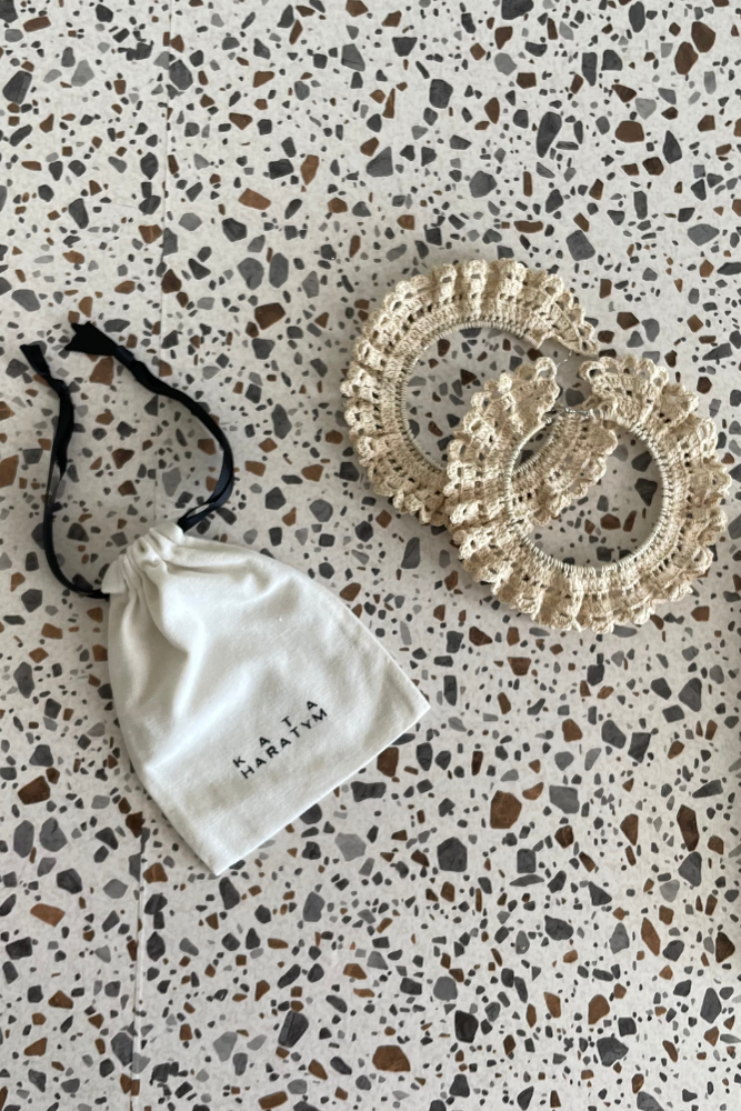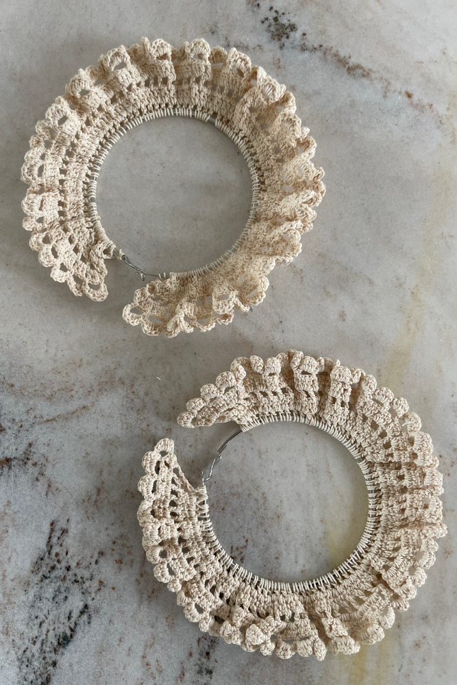 Ava Crochet Earrings – tradition meets fashion. The cotton crochet is stiffened using a traditional method called starching, using natural ingredients. The base of the hoops is made of surgical steel. Crocheted earrings made by a local artist.