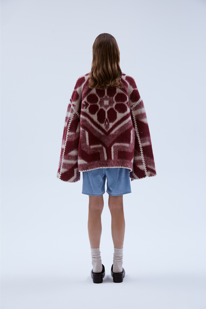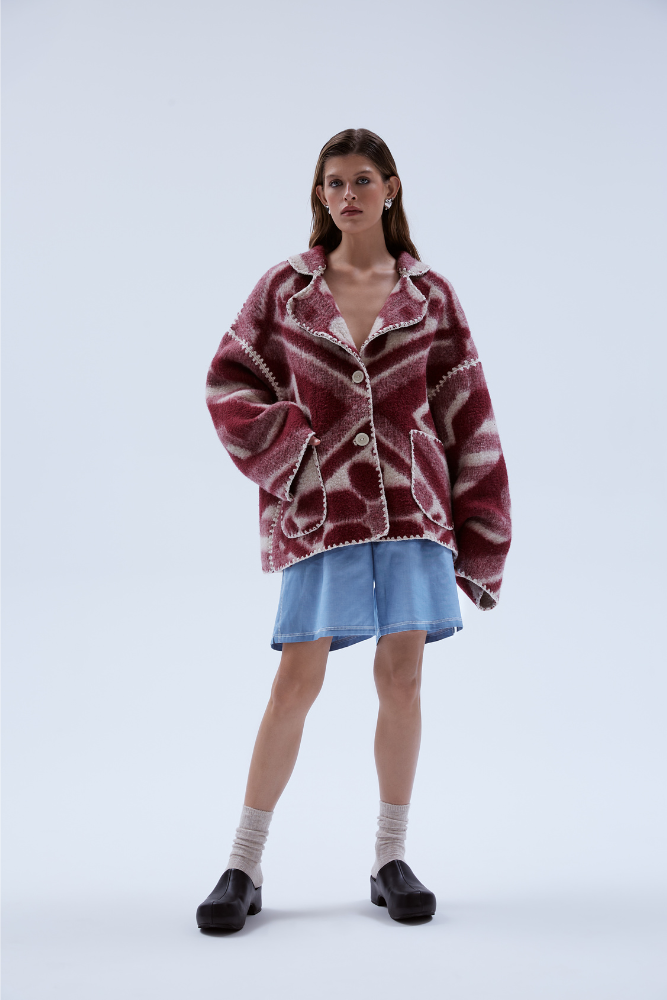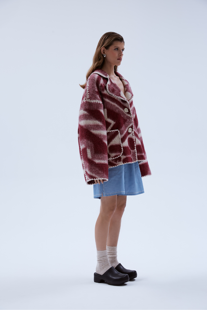 2. Take note: every jacket is custom-made with a different pattern – jackets are upcycled from vintage woolen blankets