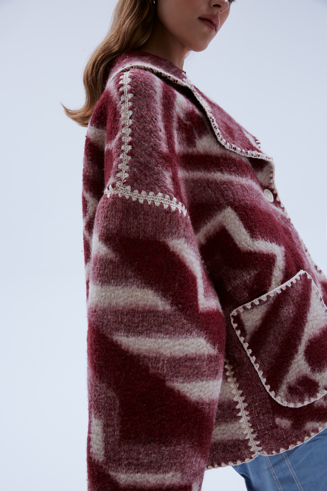 What sets us apart is the customization we offer. Each jacket is crafted from a different vintage blanket, making every piece truly one-of-a-kind. Personalize your jacket by choosing the color of the hand-crocheted seams to match your style and preferences.